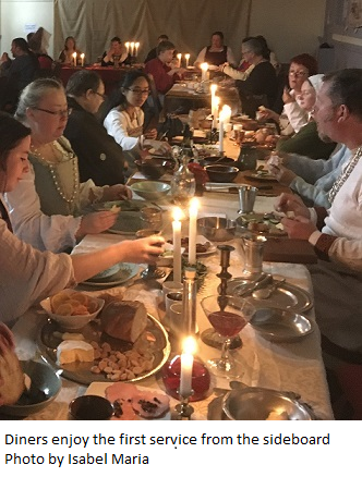 "A friend wanted to host a Christmas event with a meal (Southron Gaard, Festa de Natale, December 2018). He wanted a menu suitable for his Lady's persona, i.e. late 1570's Italian noblewoman. I chose to follow Scappi, a chef to various cardinals and pope's, whose Opera dell'arte del cucinare was published in 1570.