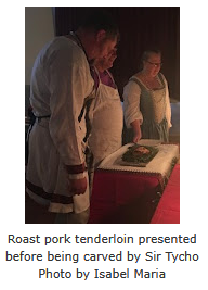 As part of the 2019 Persona Gubbins Challenge, there was a category "Do you think because you are virtuous, that there shall be no more cakes and ale?". Rather than enter an item of persona appropriate food or drink, Meistern Christian entered a whole feast. The challenge entry is shared here, together with some recipe redactions from the feast that were published, by popular request, in the June 2019 issue From The Tower (Southron Gaard's Baronial newsletter).